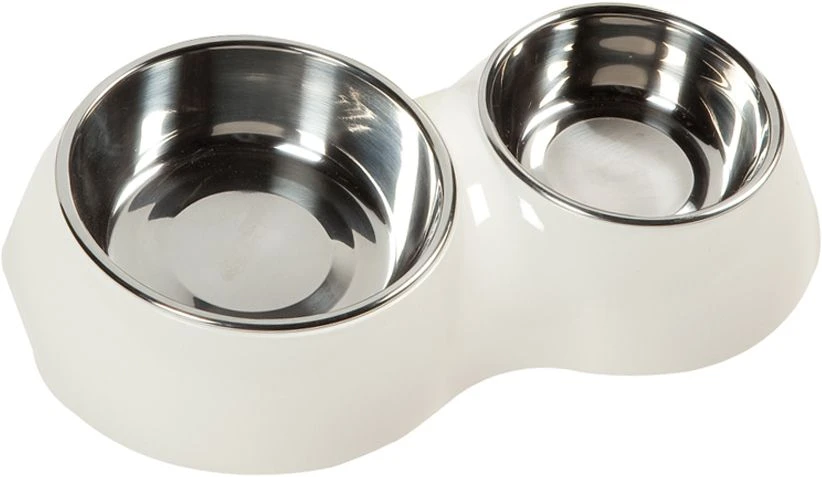 Ce plateau duo est idéal pour nourrir et offrir de l’eau potable à votre chien ou votre chat. Ces bols sont fabriqués en acier inoxydable et peuvent être facilement retirés pour être nettoyés. La gamelle double est doté d’une face inférieure antidérapante et peut être facilement ramassée grâce à l’encoche sur le côté.