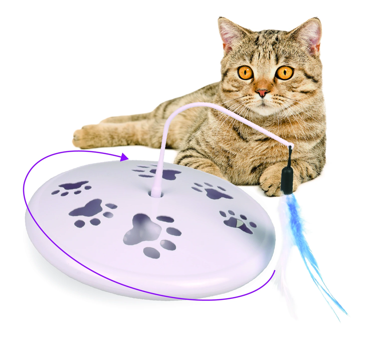 Le Galaxy est un jouet électronique pour chat qui l’occupe sans que vous ayez à faire quoi que ce soit ! Il dispose d’un minuteur avec une fonction d’arrêt automatique au bout de 15 minutes. Le disque contient une canne à pêche avec ressort qui tourne et met le chat dans tous ses états. Vous pouvez le faire jouer, lui faire de l’exercice et le récompenser en même temps !